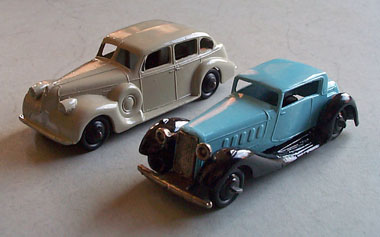 | Buick Viceroy.Grey.Manufactured 1946-50.(1939-40 model has unpainted baseplate).Humber Vogue Saloon.Lt. Blue & Black.Manufactured 1946-48.(1937-40 model has slits in baseplate for tin figures).Repro grill has been aged with a wash of black paint... |