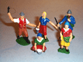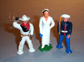 'Podfoot' Cowboy (70mm), Nurse (approx 75mm), 'Podfoot' Marine (70mm).Hollow-cast. |